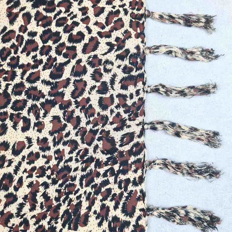 Brown Cream Skin Animal Print - Hawaiian Bali Sarong Pareo Batik Beach Swim Wrap Cover Up with Fringe - 180 x 115cm